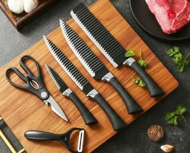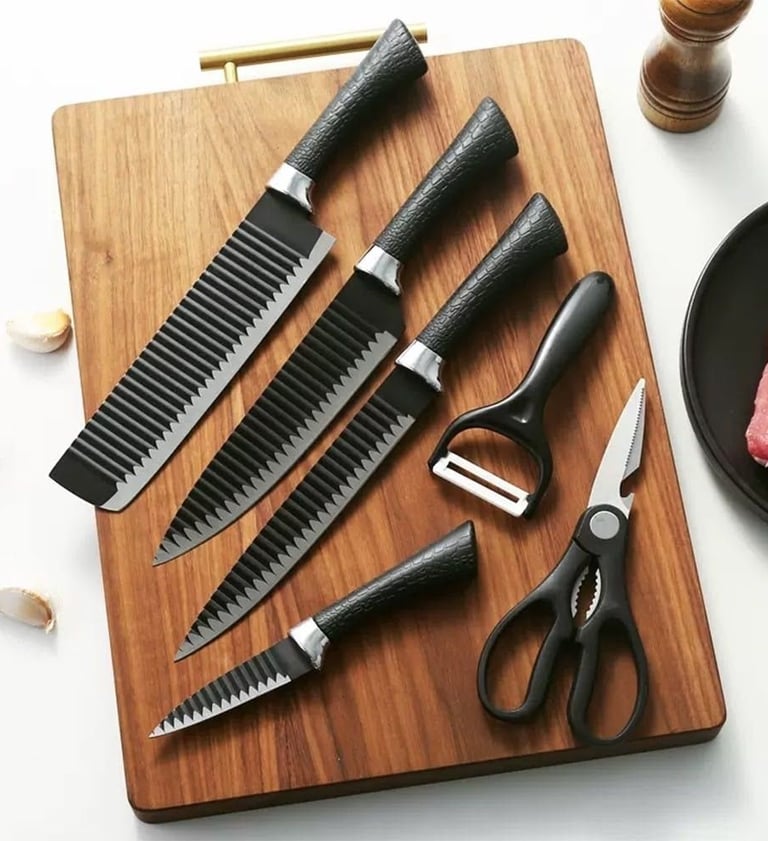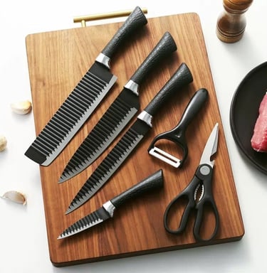 Seis facas diferentes para cada tipo de alimento: carne, frango, legumes, pão… Você sempre usa a faca certa para o corte perfeito.